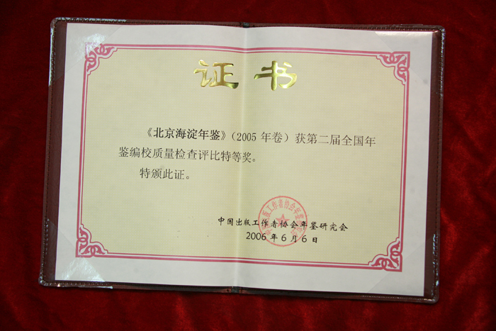 在第二届全国年鉴编校质量检查评比中获得特等奖 |