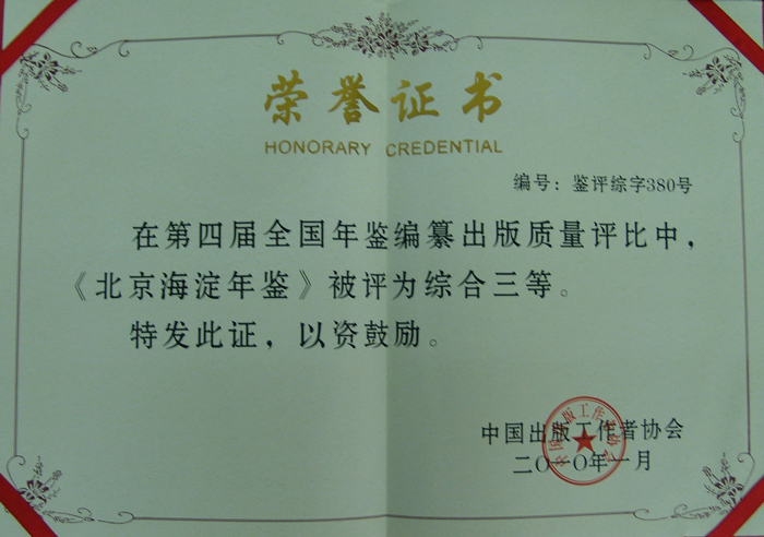 在第四届全国年鉴编纂出版质量评比中获得综合三等奖 |